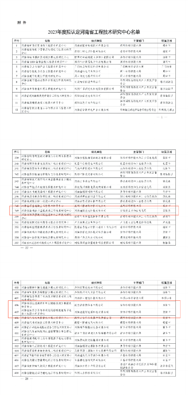 2024年1月4日河南省科學(xué)技術(shù)廳發(fā)布《關(guān)于2023年度擬認(rèn)定河南省工程技術(shù)研究中心名單的公示》,擬認(rèn)定安陽(yáng)經(jīng)開集團(tuán)投資企業(yè)德力新能源汽車有限公司、河南克能新能源科技有限公司和河南旭陽(yáng)光電科技有限公司共三家企業(yè)建設(shè)的省級(jí)工程研究技術(shù)中心。近日,2023年度河南省工程技術(shù)研究中心公示已結(jié)束,上述三家企業(yè)成功獲得認(rèn)定。