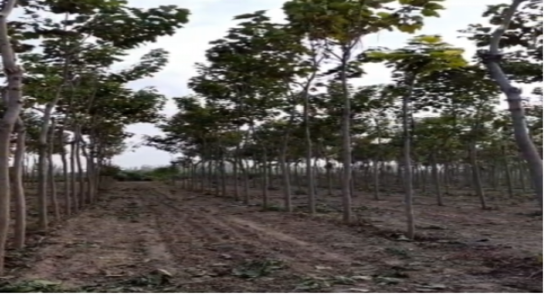 (內(nèi)黃縣三楊莊國儲林項目的租賃區(qū)域內(nèi),承租方種植了丹參與紅花。對林木進行適當修剪,確保經(jīng)濟作物能夠獲得更好的生長環(huán)境。)