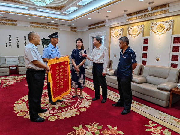 2021年7月28日下午3點,“感謝你們,我這條命是你們撿回來的!”安勤公司員工曹運玲拿著“洪水無情人有情,危難時刻伸援手”的錦旗在市黨政綜合大樓一樓會客室送到市黨政綜合樓保安中隊中隊長戶永豐手中,感謝他們的救命之恩。安陽市機關(guān)事務(wù)中心、三級調(diào)研員陳紹華,機關(guān)事務(wù)中心、保衛(wèi)科長孫文勝;安陽市安勤商務(wù)公司董事長兼總經(jīng)理劉全喜,安勤商務(wù)公司副總經(jīng)理王軍;安陽經(jīng)開集團黨委委員副總經(jīng)理劉志霞;洹河保安公司黨委委員、副總經(jīng)理魏東,總經(jīng)理助理、人防分公司經(jīng)理李向陽,參加此次活動。