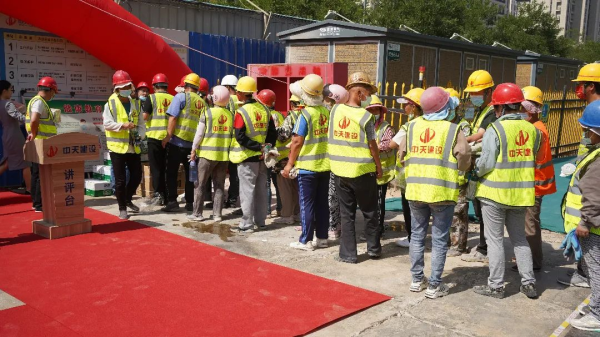 啟動(dòng)儀式上還進(jìn)行了消防應(yīng)急演練,并為項(xiàng)目一線工人分發(fā)了防暑降溫物資。