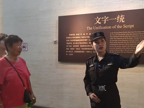 自2012年參加特保工作以來,范佳佳長期負(fù)責(zé)中國文字博物館展廳文物保護(hù)工作。在做好安保工作的同時,利用業(yè)余時間主動學(xué)習(xí)文字文化知識,深入了解館藏文物的歷史背景與文化價值,并多次協(xié)助博物館完成文化普及活動的秩序維護(hù)與安全保障,展現(xiàn)出“安全守護(hù)者”與“文化愛好者”的雙重素養(yǎng)。2024年國慶節(jié)期間,范佳佳化身講解員,結(jié)合展品特點為游客講述文字演變故事,讓游客在感受文物魅力的同時,加深對中華文字文化的理解。相關(guān)視頻被中國文字博物館公眾號發(fā)布,安陽文旅以及安陽融媒相繼轉(zhuǎn)發(fā)。